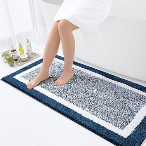 OLANLY Bathroom Rug Mat 47x24, Extra Soft and Absorbent Microfiber Bath Rugs, Non-Slip Plush Shaggy Bath Carpet Runner, Machine Wash Dry, Bath Mats for Bathroom Floor, Tub and Shower, Blue