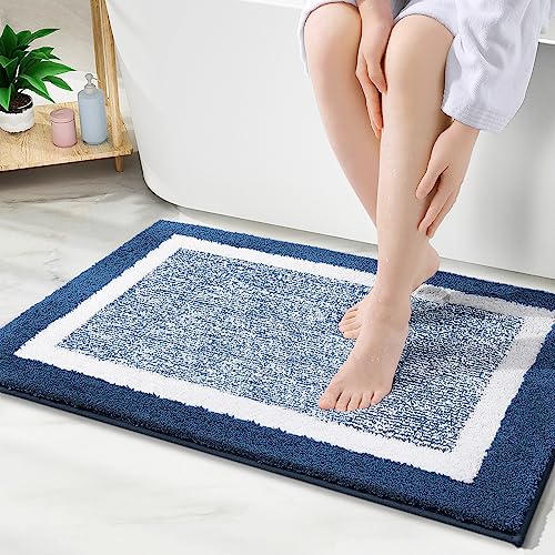 smiry Microfiber Non-Slip Bath Mats for Bathroom, Extra Soft Absorbent Bathroom Mats Rugs, Machine Washable Quick Dry Floor Mats, 40 x 60 cm, Navy Blue