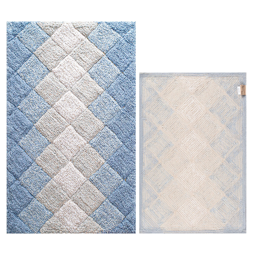 Bathroom Rugs Set 2 Piece in 100% Cotton Albany Inspired Bath Rugs 21x32/17x34 Blue Combo Anitskid Bath Rugs Set Cotton Bath Mat Cotton Bath Rugs Sof