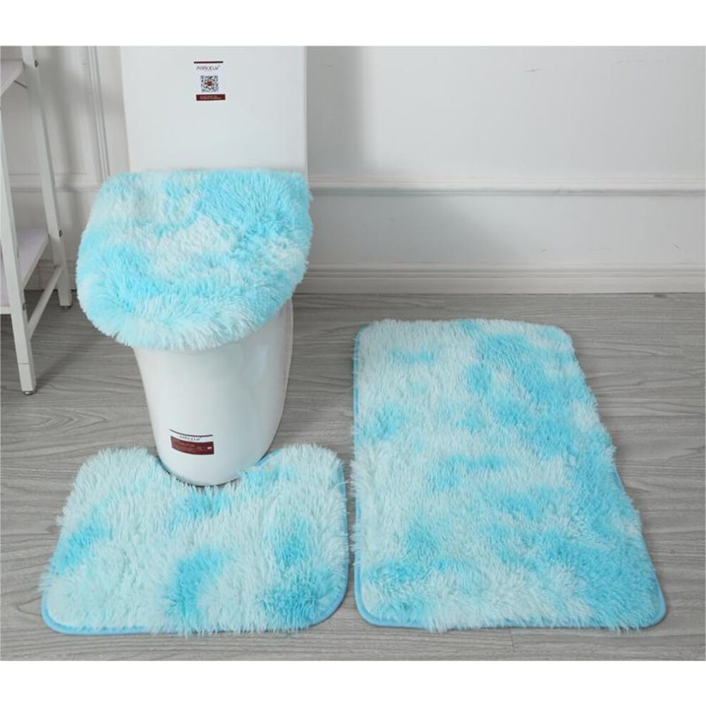 (Light Blue) Soft Microfiber Bathroom Rugs Sets 3 Piece,Non-Slip Bath Mat Fluffy Plush Toilet Seat Cover for Bathroom,Water Absorbent Bathmat,Machine