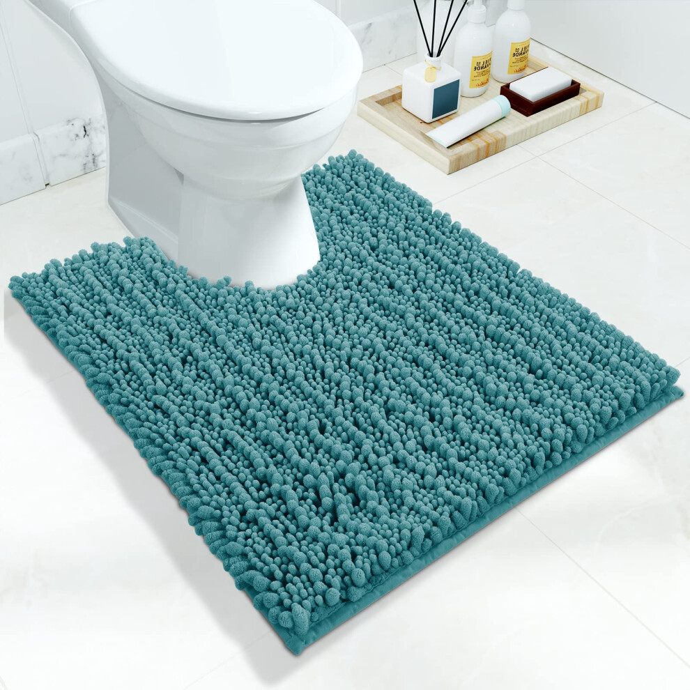 Yimobra Luxury Shaggy Toilet Bath Mat U-Shaped Contour Rugs for Bathroom Soft Maximum Absorbent Dry Quickly Non-Slip Machine-Washable Teal Blue