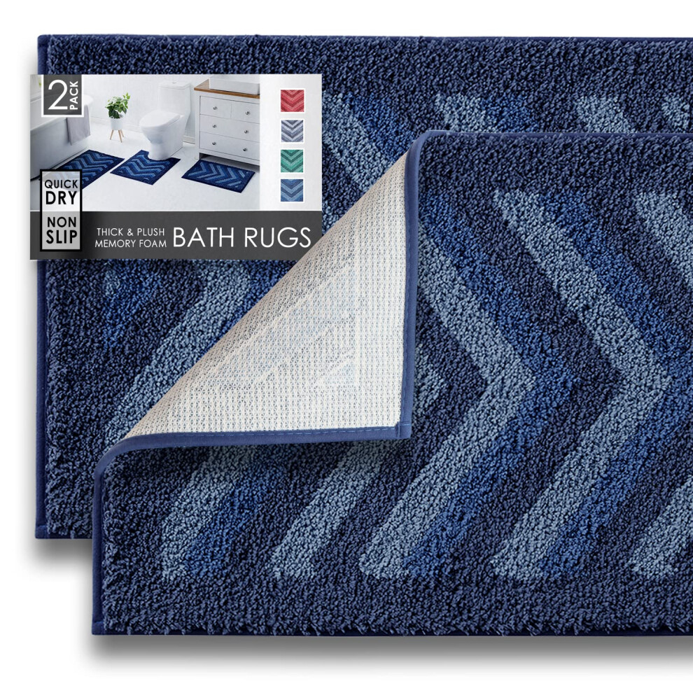 Clara Clark Bathroom Rugs Shaggy Plush Bath Mat Ultra Soft Bathroom Mat Non Slip Backing Rubber Chevron Design Bath Rugs 2 Piece Blue