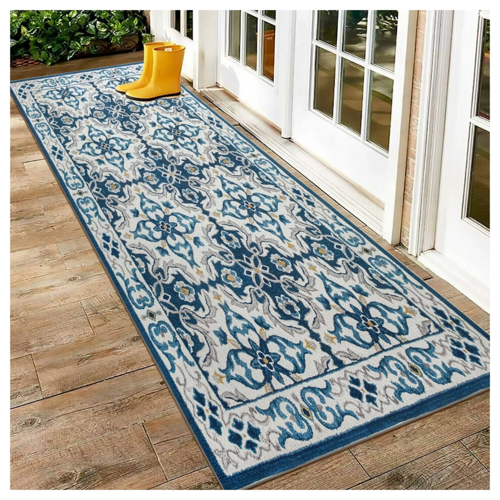 (60 x 110 cm (2 ft x 3 ft 7 in)- Large Doormats/Bath) Blue Rugs Non Slip Traditional Carpet Rug Runner Mat