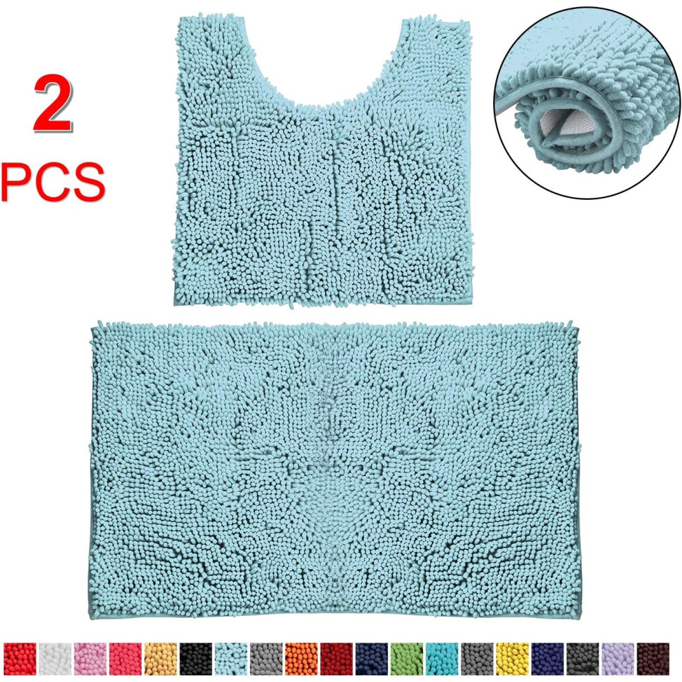 Yeaban Sky Blue Bathroom Rugs – Thick Chenille Bath Mats | Absorbent and Washable Bath Rug Non-Slip, Plush Rugs for Bathroom, Kitchen, Shower, Sink - 17" x 24"