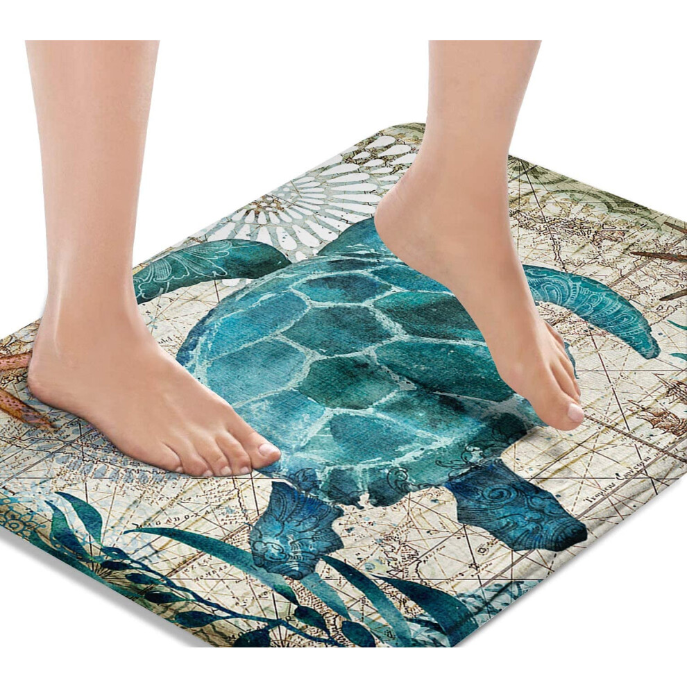 Britimes Bath Mat for Bathroom Bathroom Mats Rugs No Silp Blue Turtle Washable cover Floor Rug carpets Floor Mat Bathroom Decorations 18x30 Inc