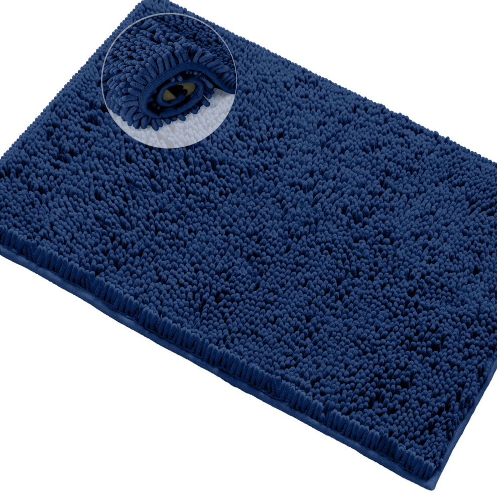 Yeaban Navy Blue Bathroom Rugs – Thick Chenille Bath Mats | Absorbent and Washable Bath Rug Non-Slip, Plush and Soft Rugs for Bathroom, Shower, Sink - 17" x 24"