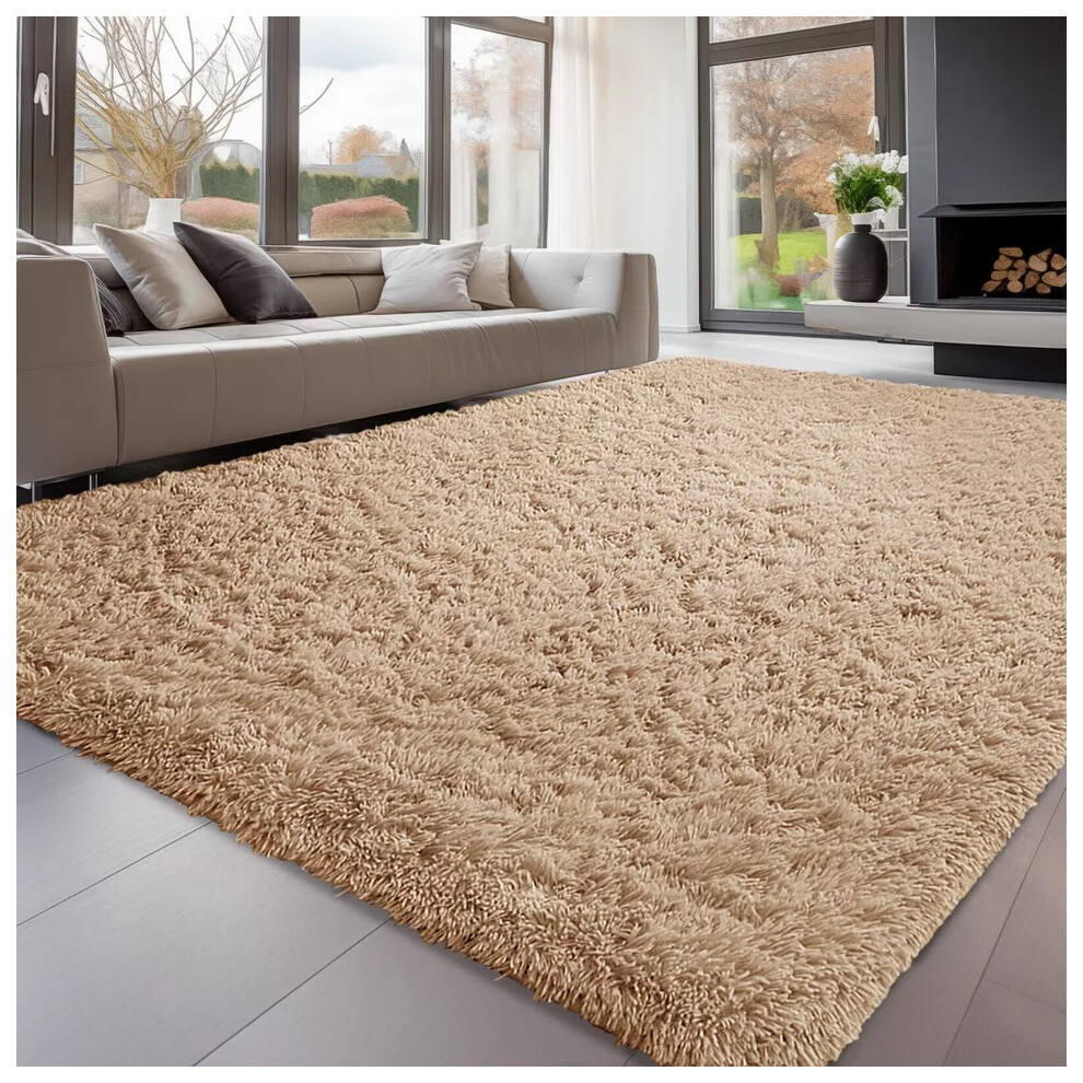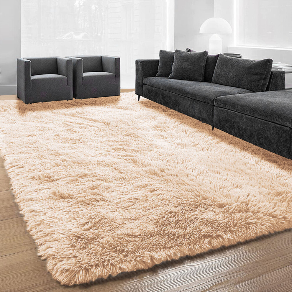 (Beige, 160cm x 230cm (5ft 3" x 7ft 6")) Non Slip Rugs Soft Shaggy Area Rugs Runner Bath & Door Mats