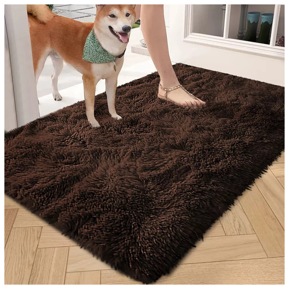 (Brown, 80cm x 150 cm (2ft 6" x 5ft)) Non Slip Rugs Soft Shaggy Area Rugs Runner Bath & Door Mats