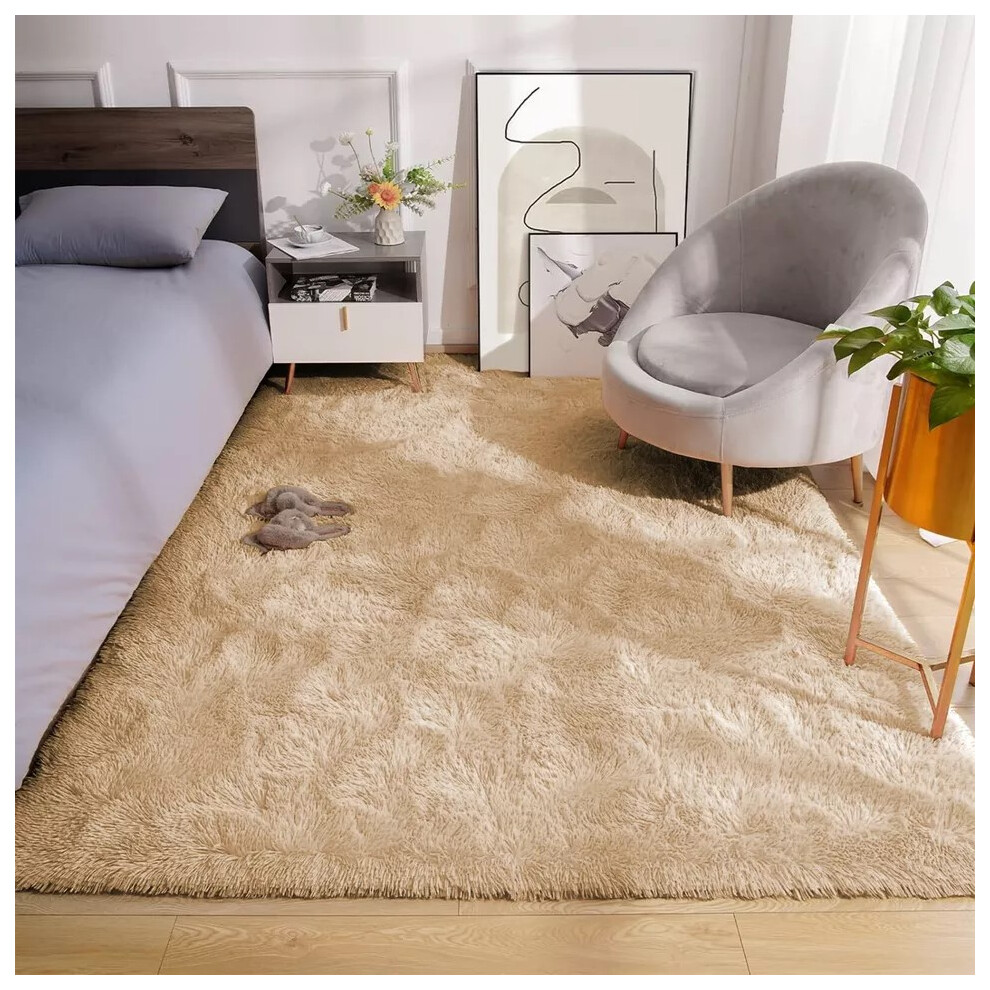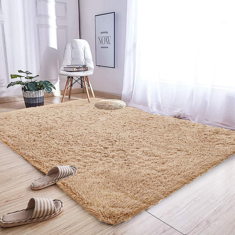 (Beige, 120cm x 170 cm (4 ft x 5 ft 6")) Non Slip Rugs Soft Shaggy Area Rugs Runner Bath & Door Mats