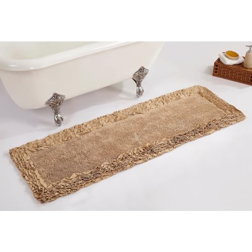 Better Trends 100% Cotton Bath Rug in Shaggy Border Collection - Ultra Soft, Plush, Absorbent, Tufted Bath Runner for Tub, Shower, and Bath Room, 20" x 60", Beige