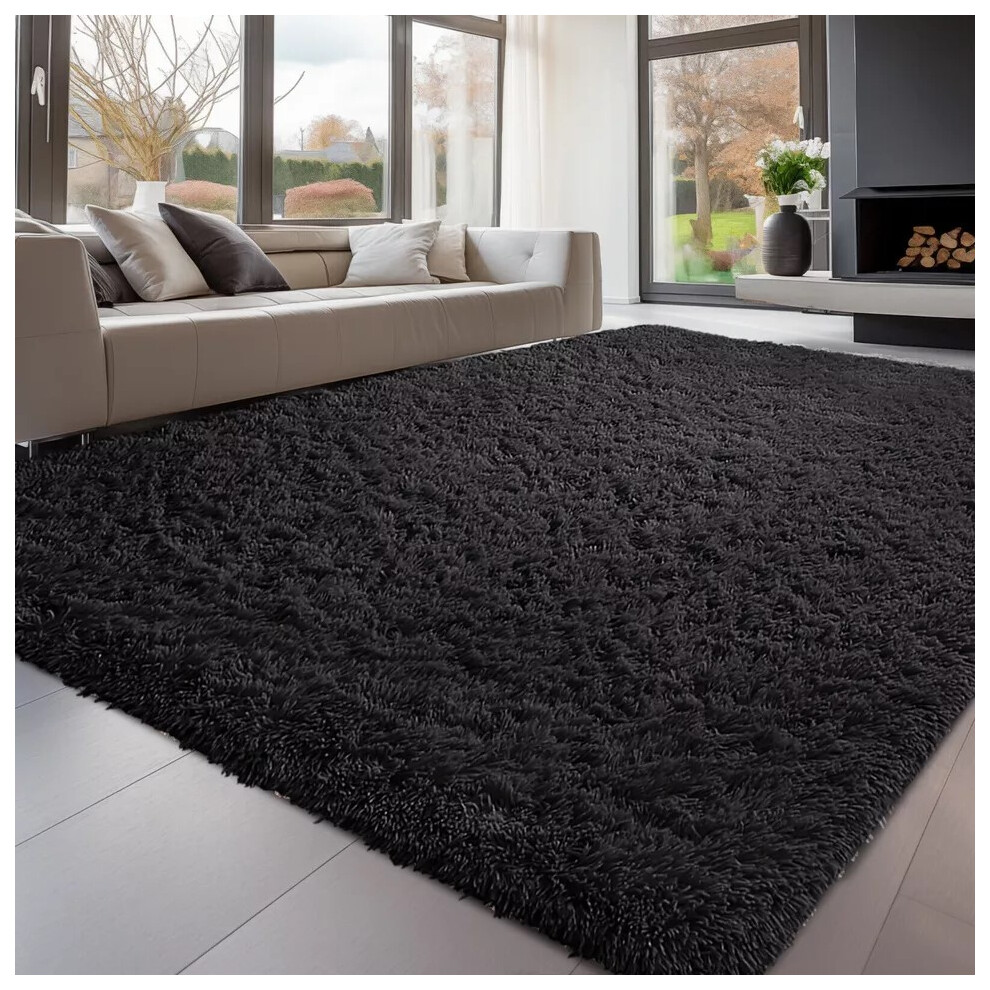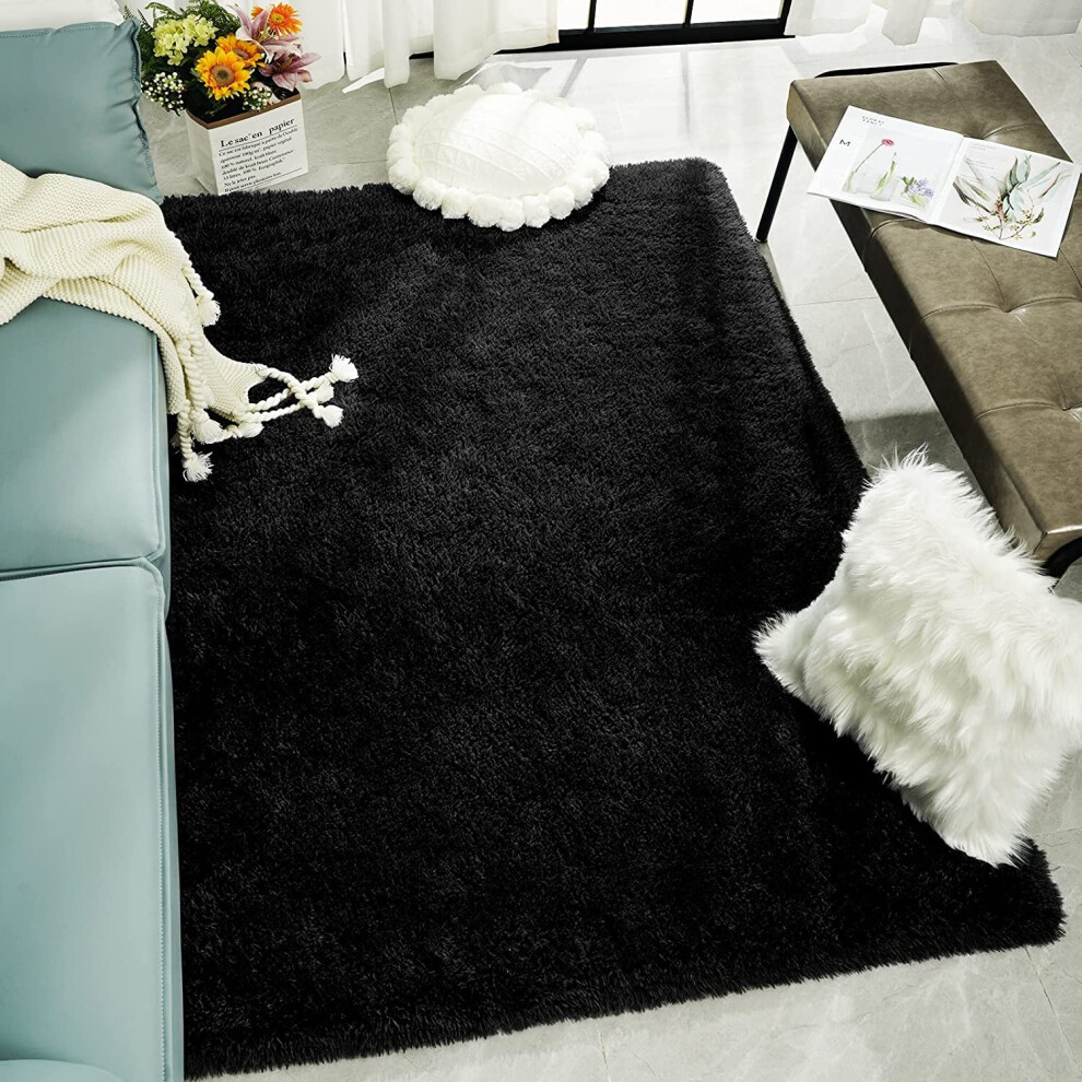 (Black, 120cm x 170 cm (4 ft x 5 ft 6")) Non Slip Rugs Soft Shaggy Area Rugs Runner Bath & Door Mats