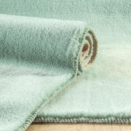 Eurofirany Decorative Rug Doormat Runner Bath Mat Living Room Bedroom Kitchen Rectangular Faux Fur Soft, Mint, 50 x 70 cm