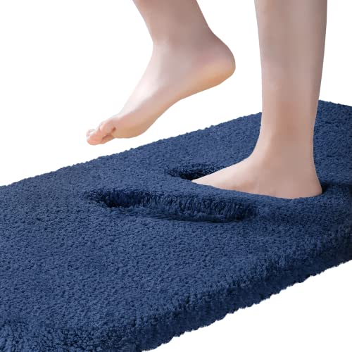 ROLIZOE Ultra Thick Bathroom Long Runner Rug Non Slip Bath Mat Runner Highly Absorbent Bath Rug for Bathroom Super Soft Bedside Rug Microfiber Floor Carpet Runner 50 x 122cm, Navy Blue