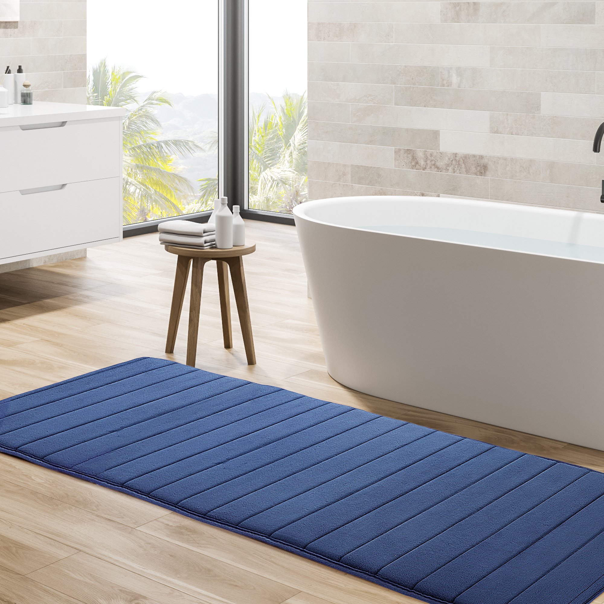 Non Slip Long Bath Mat Runner Memory Foam Absorbent Bathroom Shower Pedestal Mat