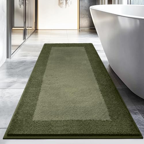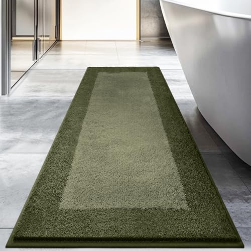 Hixingo Kitchen Rug Mat Non Slip Washable Runner Rugs Hallway Absorbent Quick-Drying Solid Color Diatom Mud Bath Floor Door Mat Long Carpet for Sink, Bathroom, Laundry Room (45x180cm,Olive Green)