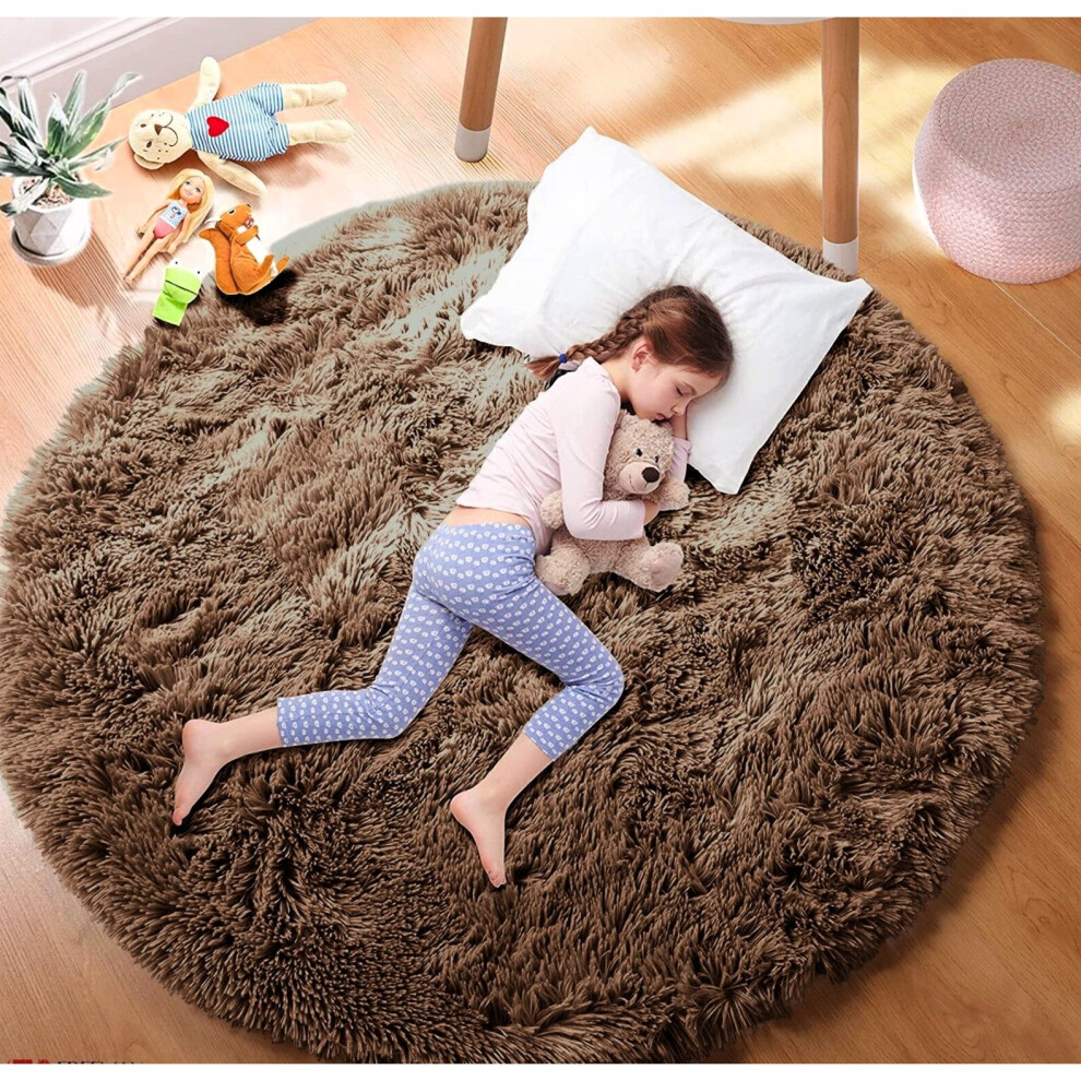 (Brown, 120cm x 120 cm (4 ft x 4 ft)_Round Rug) Non Slip Rugs Soft Shaggy Area Rugs Runner Bath & Door Mats