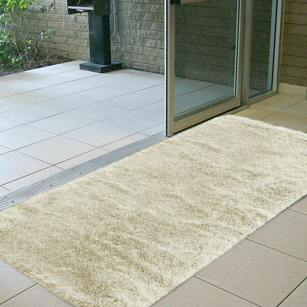 (Cream, 80cm x 150 cm (2ft 6" x 5ft)) Non Slip Rugs Soft Shaggy Area Rugs Runner Bath & Door Mats