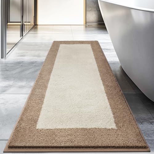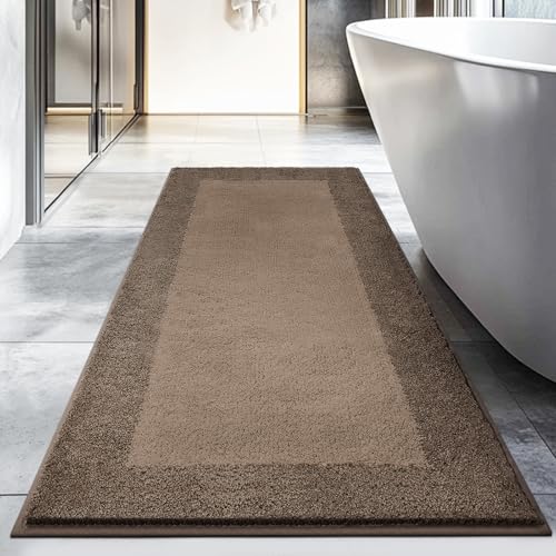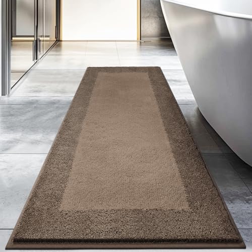 OLANLY Bathroom Rug Mat 59x20, Extra Soft and Absorbent Microfiber Bath Rugs, Non-Slip Plush Shaggy Bath Carpet Runner, Machine Wash Dry, Bath Mats for Bathroom Floor, Tub and Shower, Brown