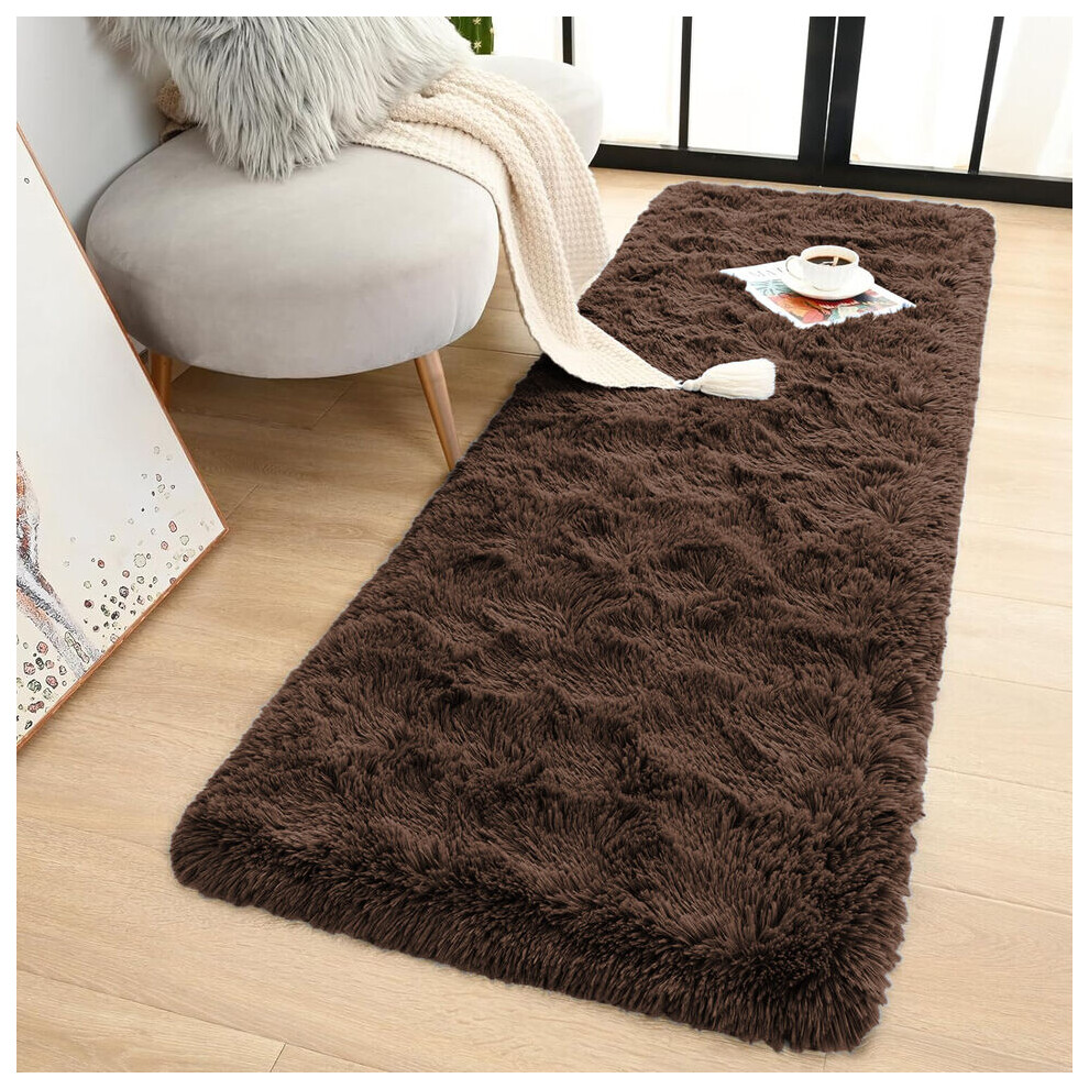 (Brown, 60cm x 110 cm (2ft x 3ft 7")) Non Slip Rugs Soft Shaggy Area Rugs Runner Bath & Door Mats
