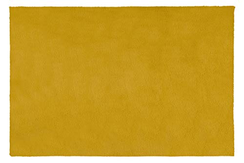 Eurofirany Decorative Rug Doormat Runner Bath Mat Living Room Bedroom Kitchen Rectangular Faux Fur Soft Mustard Yellow, 50 x 70 cm