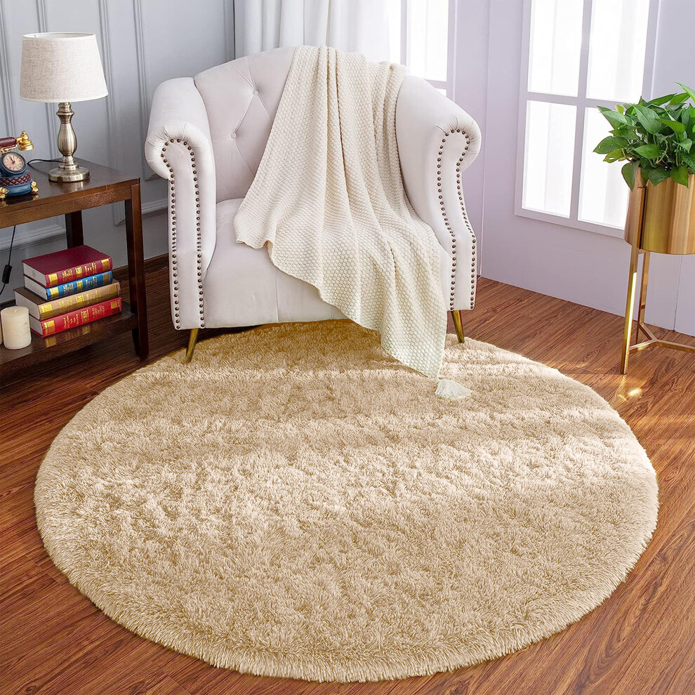 (Beige, 120cm x 120 cm (4 ft x 4 ft)_Round Rug) Non Slip Rugs Soft Shaggy Area Rugs Runner Bath & Door Mats