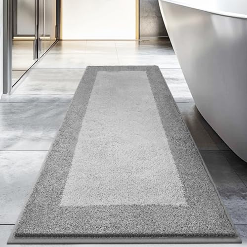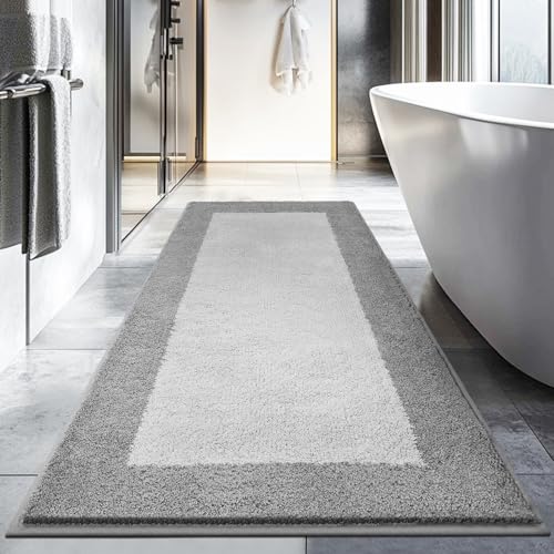 OLANLY Bathroom Rug Mat 47x17, Extra Soft and Absorbent Microfiber Bath Rugs, Non-Slip Plush Shaggy Bath Carpet Runner, Machine Wash Dry, Bath Mats for Bathroom Floor, Tub and Shower, Grey
