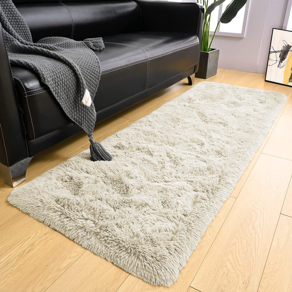 (Cream, 60cm x 220 cm (2ft x 7ft 3")) Non Slip Rugs Soft Shaggy Area Rugs Runner Bath & Door Mats