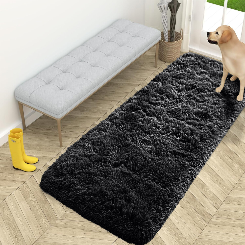 (Black, 60cm x 220 cm (2ft x 7ft 3")) Non Slip Rugs Soft Shaggy Area Rugs Runner Bath & Door Mats