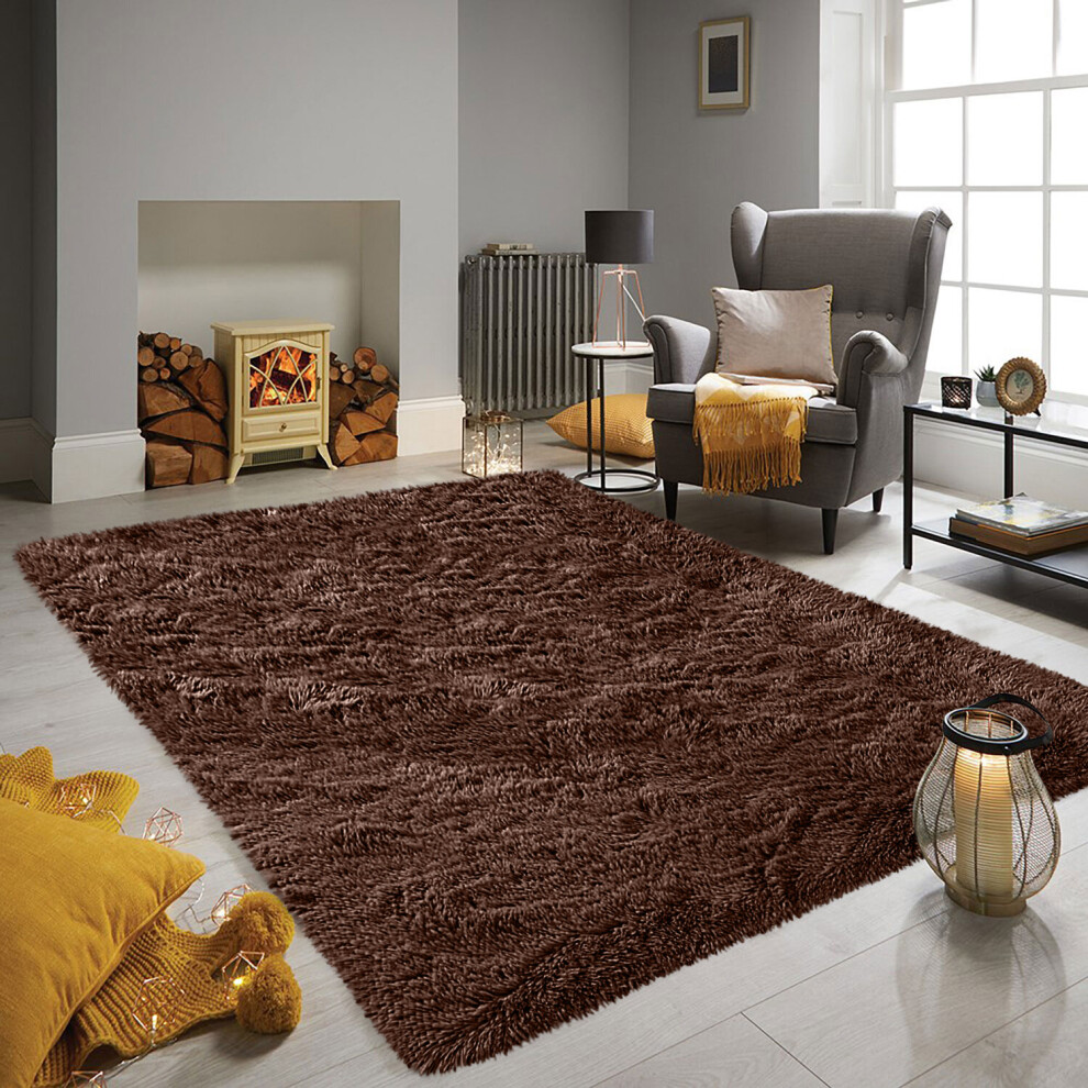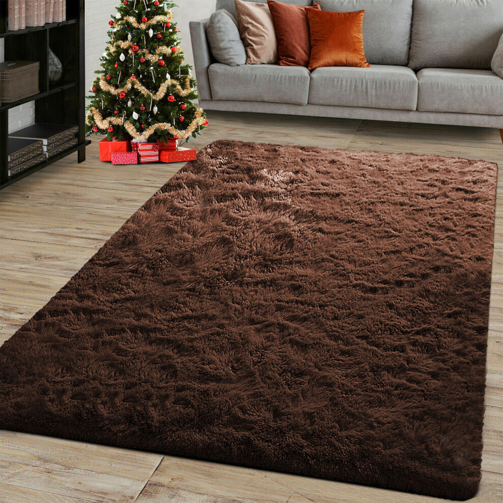 (Brown, 120cm x 170 cm (4 ft x 5 ft 6")) Non Slip Rugs Soft Shaggy Area Rugs Runner Bath & Door Mats