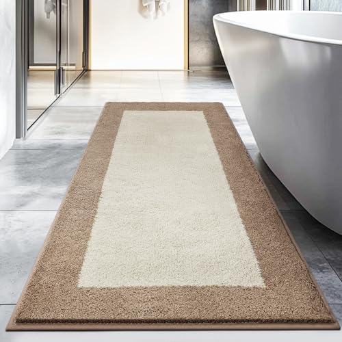 ROLIZOE Ultra Thick Bathroom Long Runner Rug Non Slip Bath Mat Runner Highly Absorbent Bath Rug for Bathroom Super Soft Bedside Rug Microfiber Floor Carpet Runner 50 x 122cm, Beige