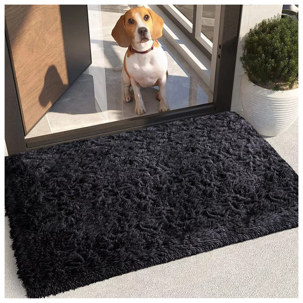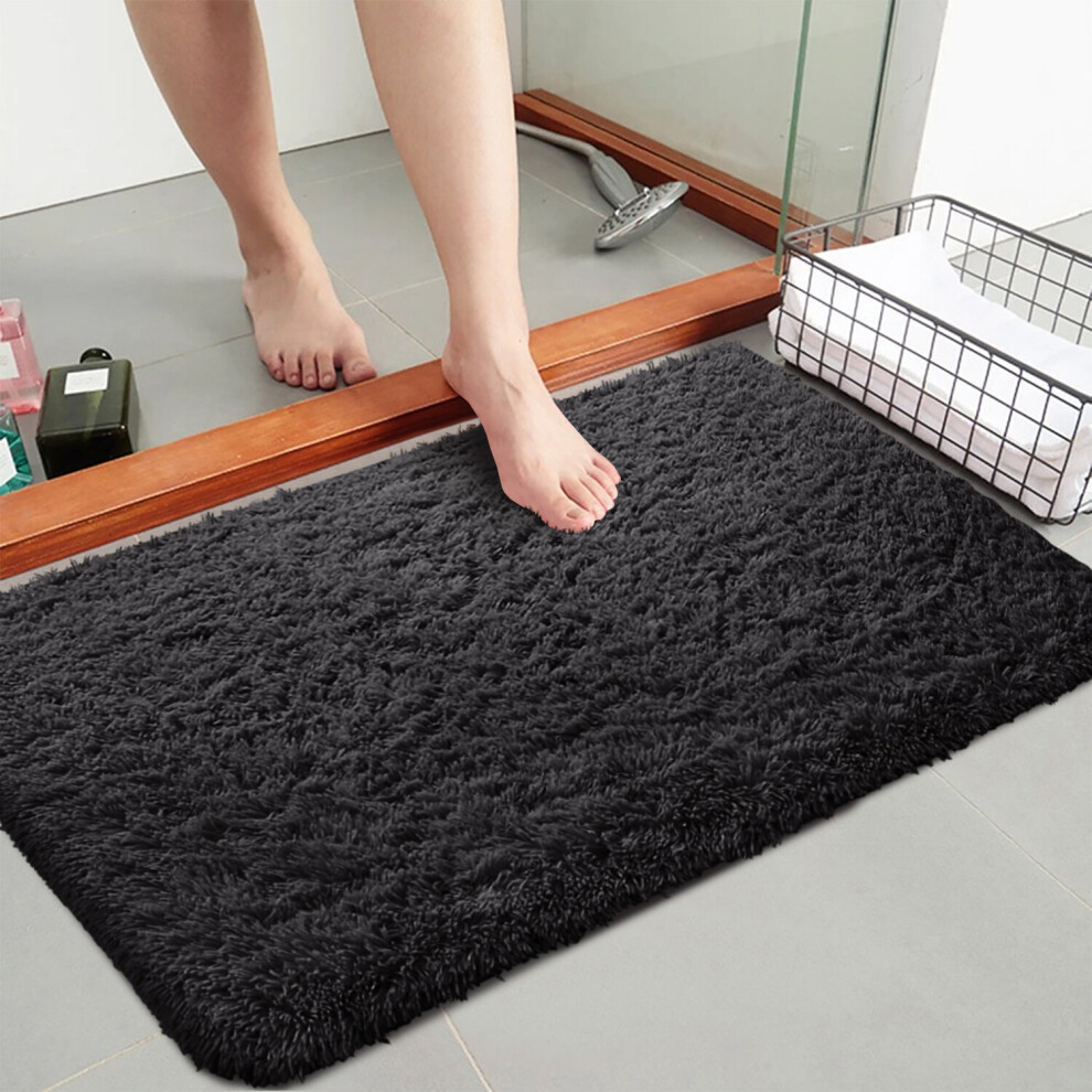 (Black, 50cm x 80 cm (1 ft 6 in x 2 ft 6 in)) Non Slip Rugs Soft Shaggy Area Rugs Runner Bath & Door Mats