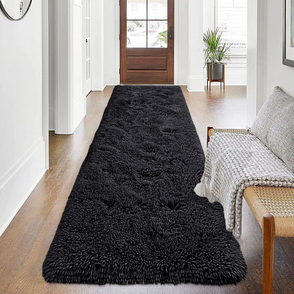 (Black, 80cm x 300 cm (2ft 6" x 9ft 8")) Non Slip Rugs Soft Shaggy Area Rugs Runner Bath & Door Mats