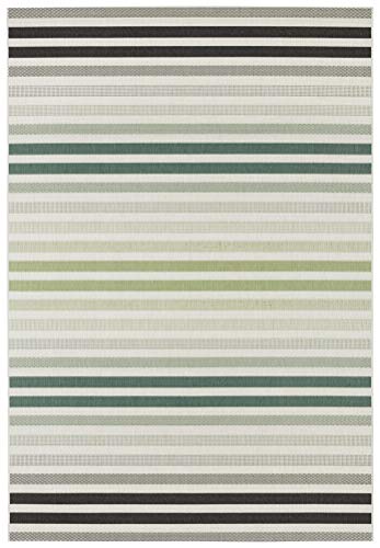 NORTHRUGS Indoor and Outdoor Rug 80 x 150 cm - Weatherproof Modern Striped Design Line Pattern Runner Patio Rug Balcony Rug Kitchen Runner Bath Rug Living Room Rug Waterproof in Green Cream