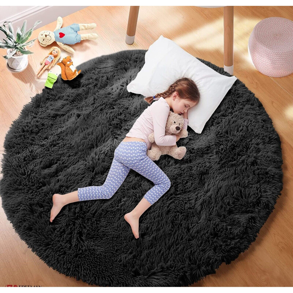 (Black, 120cm x 120 cm (4 ft x 4 ft)_Round Rug) Non Slip Rugs Soft Shaggy Area Rugs Runner Bath & Door Mats