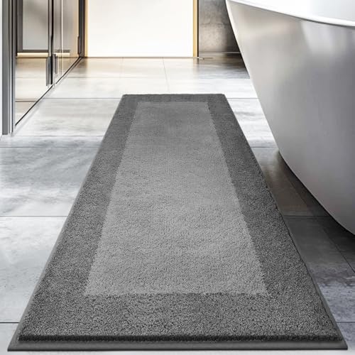 ROLIZOE Ultra Thick Bathroom Long Runner Rug Non Slip Bath Mat Runner Highly Absorbent Bath Rug for Bathroom Super Soft Bedside Rug Microfiber Floor Carpet Runner 50 x 122cm, Dark Grey