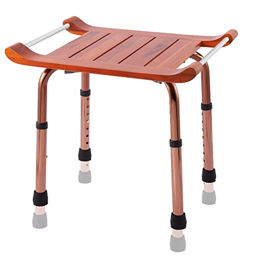 SXJY Bath Shower Chairs,Medical Chair Adjustable Bench Stool Seat, Teak with Handles Wooden Spa Bathroom Non-slip Feet, Supports Up to 300 Lbs