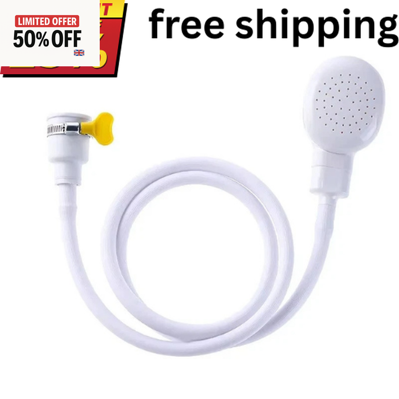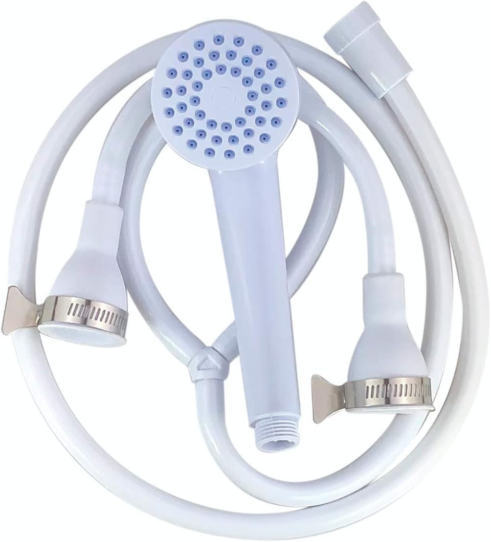 Bath Sink Single Tap Shower Attachment Head Hose Spray 1.3M Hose Length White Hand Held Portable With Clamps