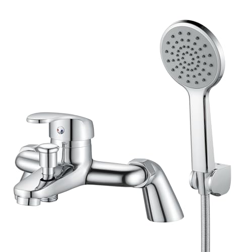 Rehomthy Bath Shower Mixer Tap with Shower Head and Hose, Modern Round Monobloc Single Bath Taps with Shower Attachment, Chrome, 180mm Centres