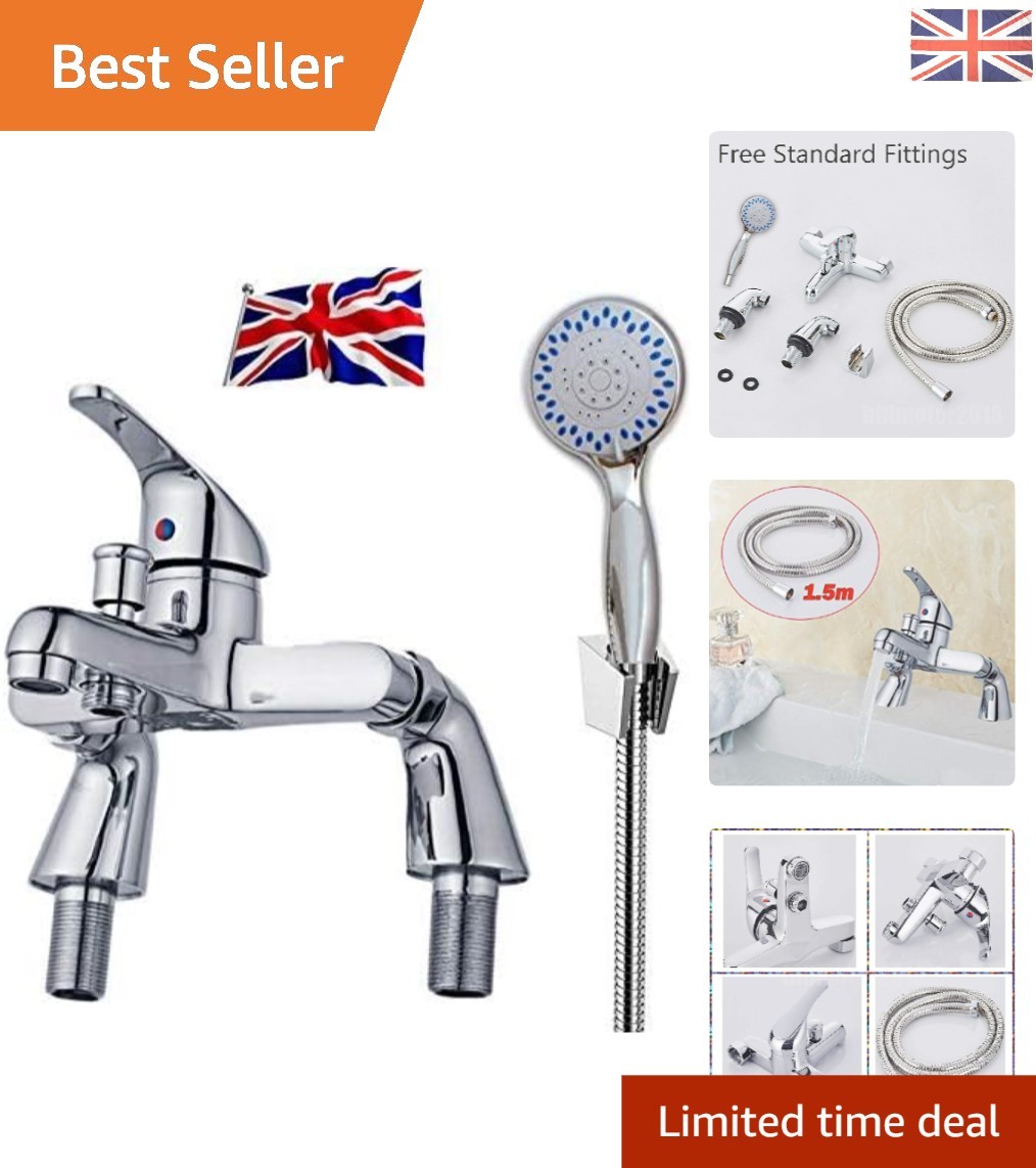 Modern Chrome Finish Bath and Shower Mixer Tap with Handheld Shower Attachment