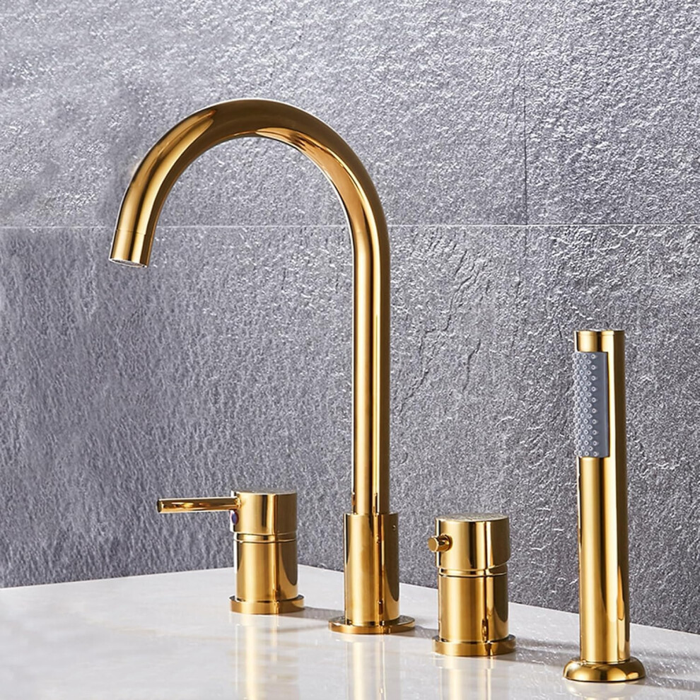 YRYRHX Deck Mounted Bath Shower Mixer Tap Gold Bath Taps with Shower Attachment 360 Swivel Spout Double Lever Pull Out Tap Household faucets
