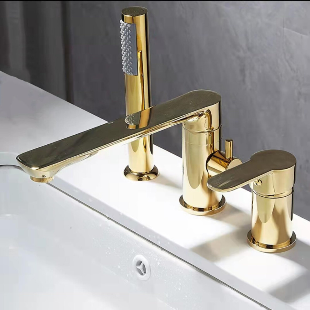 Deck Mount Bath Mixer Tap With Shower Attachment, 4Hole, Black And Gold