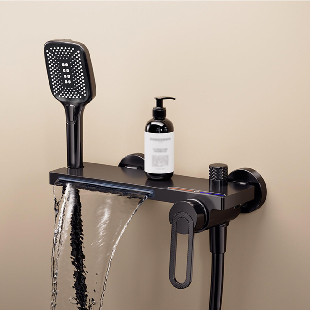 Black Wall Mounted Waterfall Bath Mixer Tap with Shower Attachment, Adjustable 135165mm