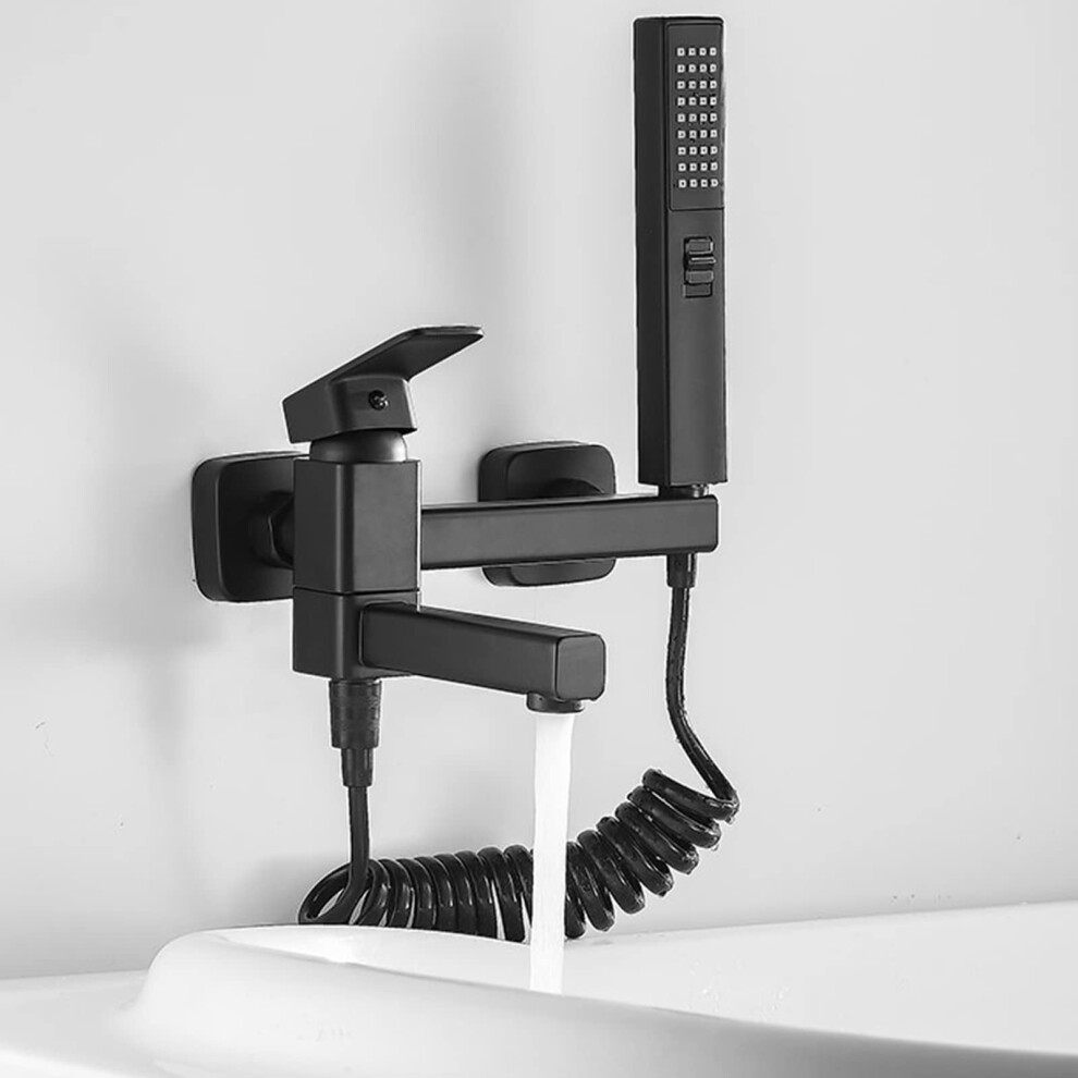 Black Wall Mounted Bath Mixer Tap with Shower Attachment Brass Hot Cold Water Bathtub Faucet