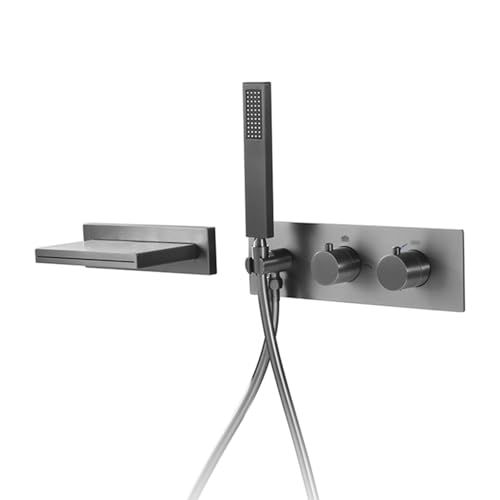 HAGTRB Shower Head Bath Mixer Taps with Shower Wall Mounted Concealed Bath Mixer Tap Waterfall 4 Hole Hot and Cold Brass Waterfall Bathtub Faucet for Bathroom Chrome