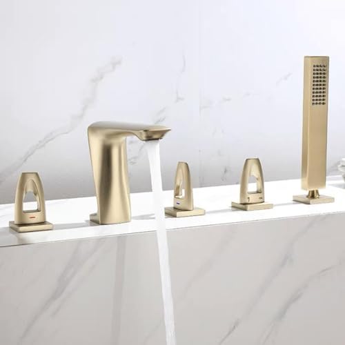 CHCWR Modern 5 Hole Bath Taps with Hand Shower Brass 3 Handle Pull Out Bath Shower Mixer Tap Set Hot and Cold Water Black Finish