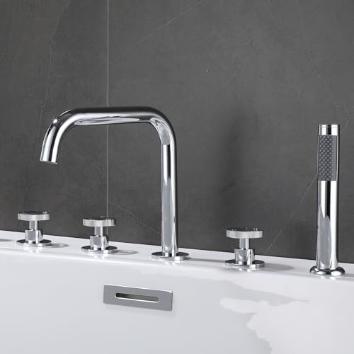 YRYRHX Bath Mixer Taps with Shower Chrome Bathtub Hand Shower Tap Set Bathroom 5 Hole Tub Mixer Faucets 360 Swivel Spout Household faucets