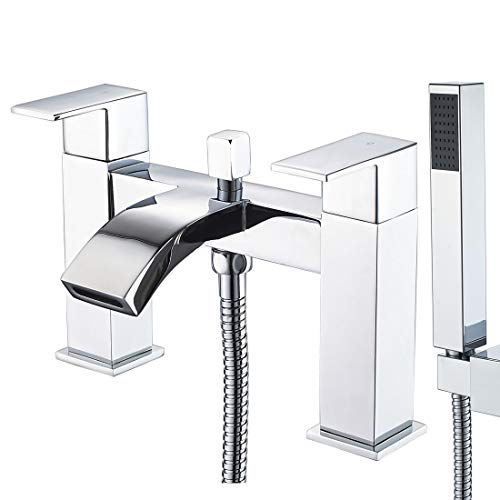 Luckyhome Bath Taps with Shower,Waterfall Bathroom Bathtub Mixer tap Chrome Brass Dual Lever Tap with Handheld Shower Head