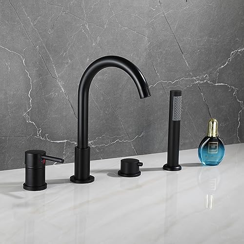 PACUM Bath Shower Mixer Tap 360 Swivel Spout Bathroom taps Mixer with Shower Set 4 Holes Bath taps with Shower Mixer,Black,B Warm as ever