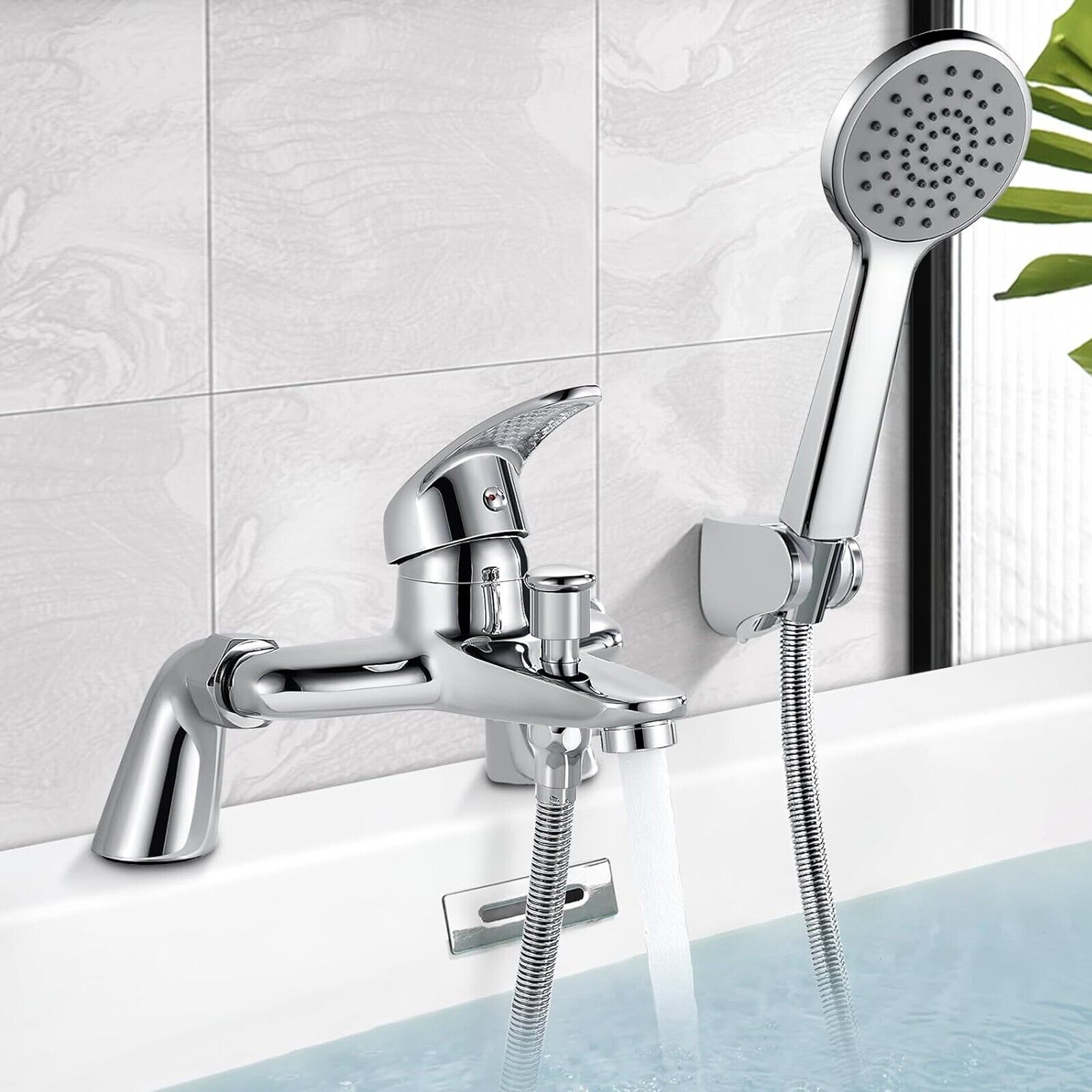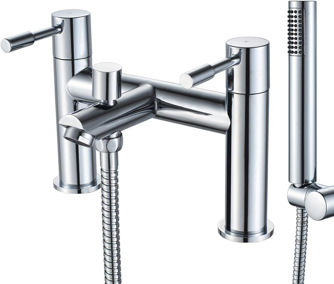 WasserRhythm Bath Mixer Taps with Shower Attachment Bathroom Tub Filler Tap Dual Lever Mixers Mono Monobloc Two Holes Chrome Brass 2 in 1 Bathtub Faucet with Handheld Shower Modern Deck Mounted