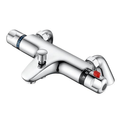 Thermostatic Bath Shower Mixer Tap, AIMOYO Deck Mounted Thermostatic Bath Tub Taps, Solid Brass Thermostatic Bathtub Shower Mixer Bar Valve, Thermostatic Bath Mixer Taps with Shower, 180mm